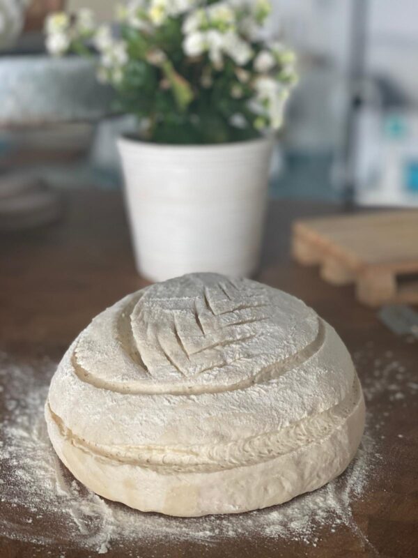 - Infarinatela e fate delle incisioni con una lametta per creare un disegno a spiga sul vostro pane. Lasciate un'ora a riposare.